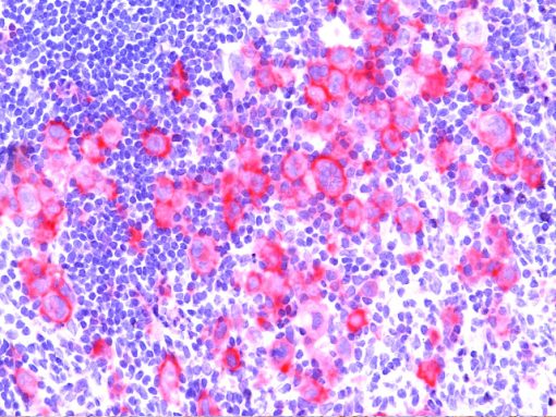 CD30 antibody [Ki-1] is expressed in mononuclear Hodgkin’s and multinucleated Reed-Sternberg cells in Hodgkin’s disease, in tumor cells of a majority of anaplastic large cell lymphomas, in a varying proportion of activated T and B cells and by embryonal carcinomas. It aids in distinguishing large cell lymphomas derived from activated lymphoid cells from histiocytic malignancies and lymphomas derived from resting and precursor lymphoid cells, or from anaplastic carcinomas. Compared to other CD30 mouse antibodies, [Ber-H2] has shown stronger labeling intensity and higher percentage of positively labeled cells.
