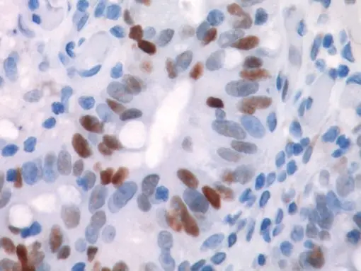 p53 has been observed to act as both as a tumor-suppressor and transcription factor. p53 activation by DNA damage or other stress signals is reported to trigger DNA repair, cell-cycle arrest or apoptosis. The nuclear p53 gene is located on chromosome 17p, a frequent site of allele loss in many tumors (60%) including breast, colon and lung. Studies have shown this high affinity p53 rabbit monoclonal is very specific and is superior to other p53 mouse monoclonal antibodies. p53 antibody recognizes both wild-type and mutant p53.