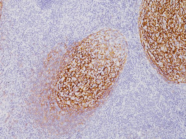 CD21 antibody has been shown to label follicular dendritic cells, as a means of illustrating the phenomenon of follicular colonization in marginal zone lymphoma. Follicular dendritic cell markers such as SR-100, CD21 or CD35 may be used for the differential diagnosis in tonsillar masses. CD21 has also been used in proving cell lineage in some rare follicular dendritic cell tumors. CD21 has been shown to be a reliable marker of follicular dendritic cells in angioimmunoblastic T-cell lymphomas.